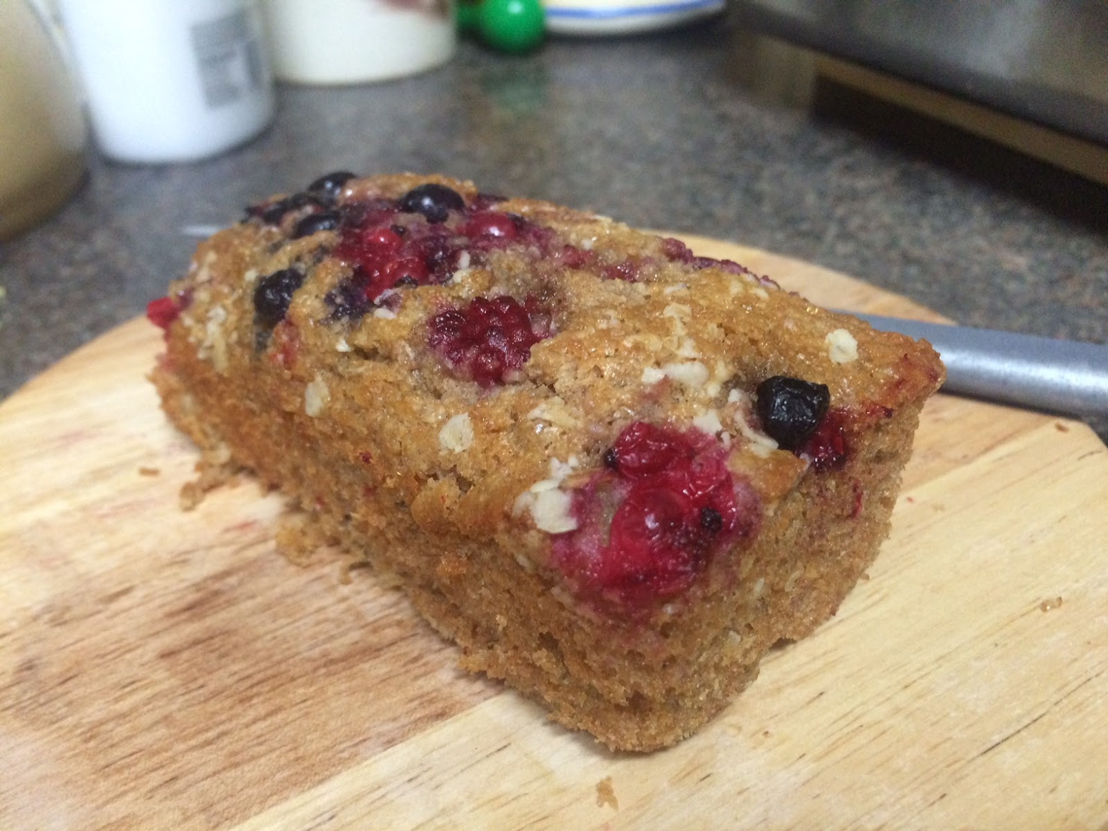 Se prepara añadiendo los ingredientes líquidos y después los secos. Al terminar añadiendo todas las substituciones, encontré la masa muy densa por la harina spelta integral, y añadí leche de almendra (o leche de coco) hasta que quedara más «normal» como la receta tradicional. No he medido pero creo que fue aproximadamente 1/2 frasco de yogur (la medida). Añadir poco a poco.