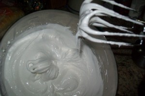 Batir a máxima velocidad con batidora unos 12 minutos hasta que formen picos que mantengan su forma rígida como merengue. Explicar que el color blanco representa la pureza de la vida que ha recibido el perdón de pecado por medio del sacrificio de Cristo en la cruz. Leer Isaías 1:18 y Juan 3: 1-3