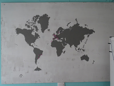 Con chinchetas ha puesto los países donde ha visitado.