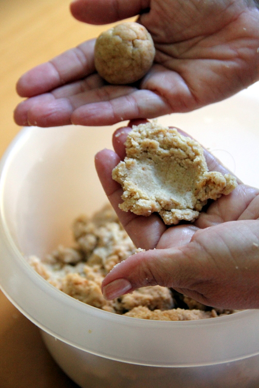 Hacer bolitas de unos dos centímetros de diámetro más o menos.