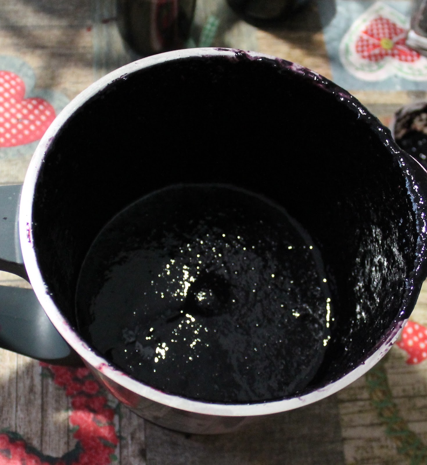 Después pasamos las moras a un cazo y las cocemos al fuego fuerte. Cuando empiecen a hervir bajamos el fuego a medio, dejamos que hierva hasta que tenga la textura tan consistente como preferimos. Si se quiere, se puede triturarla un poco. A mí personalmente me gusta encontrar algún que otro trocito pequeño en la mermelada. A mis hijos no les gustan los trocitos , así que para ellos la triture un poco más. Otro tanto lo triture aún más en la Thermomix, y lo pasé por un colador para quitarle todas las pepitas, para usarlas en repostería.