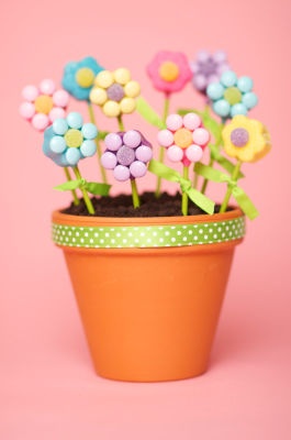 Para crear un centro de mesa solo tienes que tener espuma floral (oasis), bases o cualquier recipiente pequeño como cajitas de madera, o pequeñas macetas, papel de seda, algunos globos, caramelos y todo lo que se te ocurra.