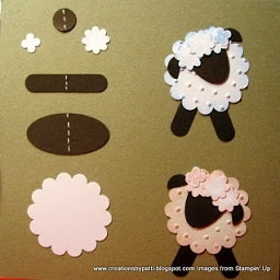 Una ovejita hecha con troqueladores. Todo puede, entretanto, ser simulado con unas tijeras de formas. El «embossing» también con algo puntiagudo y una superficie suave.