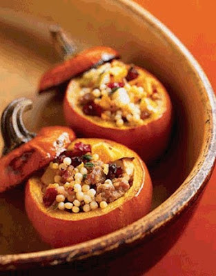 3. Untar la calabaza por dentro con el queso, añadir la crema de gambas, tapar y llevar al horno pre calentado durante 15 minutos para que se caliente. Servir con arroz blanco.