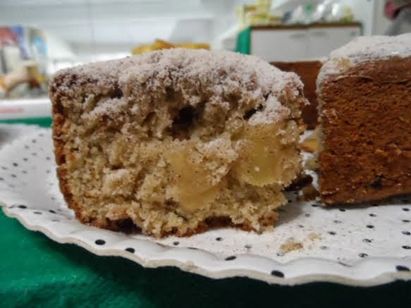 Preparo: Batir en la licuadodra el aceite, los huevos y las cáscaras de la manzana. En un bol poner la harina, el azucar, las nueces, las pasas y el polvo Royal. Mezclar el líquido salido de la licuadora y juntar las manzanas. Asar en forma de bizcocho redondo.