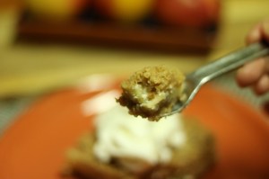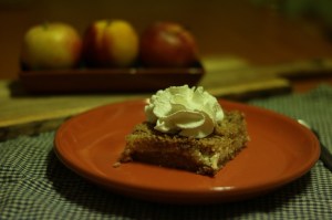 Asar por 35 minutos más o menos, o hasta que se dore. Ya podéis disfrutarlo, tibio con helado de vainilla o nata, o frío como barrita de desayuno ¡Es delicioso!
