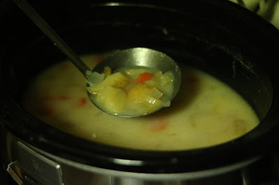 Esta sopa es muy socorrida. Lo hice en la olla de cocción lenta pero la puedes hacer en cualquiera. La base que da el sabor super especial es la cebolla frita en mantequilla. Una vez lo he freído añadí patatas, zanahorias y apios. Una vez cocidos, he ajustado de sal y añadí un pequeño brick de nata para cocinar. Es muy fácil sabrosa y ideal para las noches de otoño.