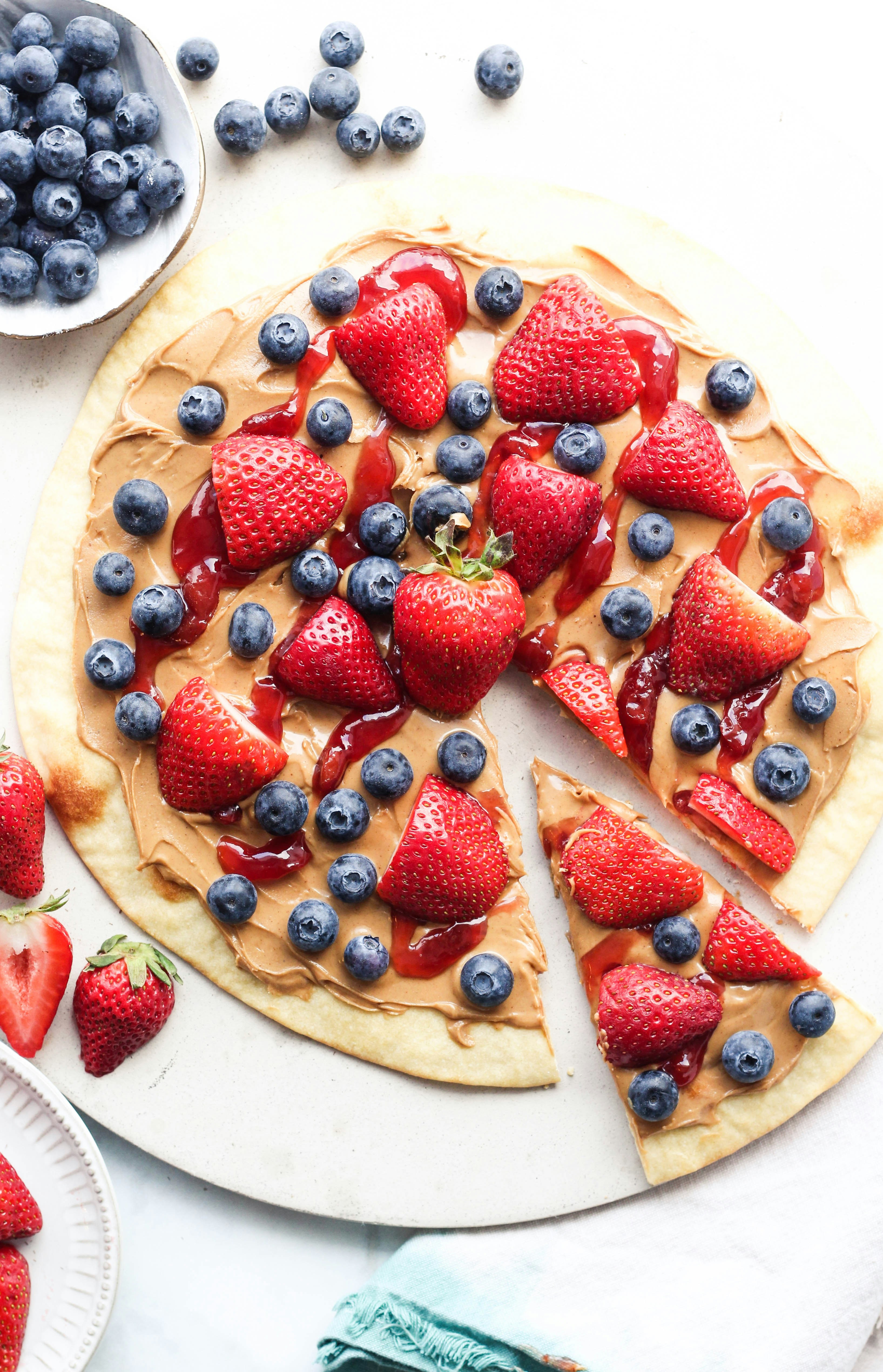 Bocadillo o tortilla con crema de cacahuete y fruta