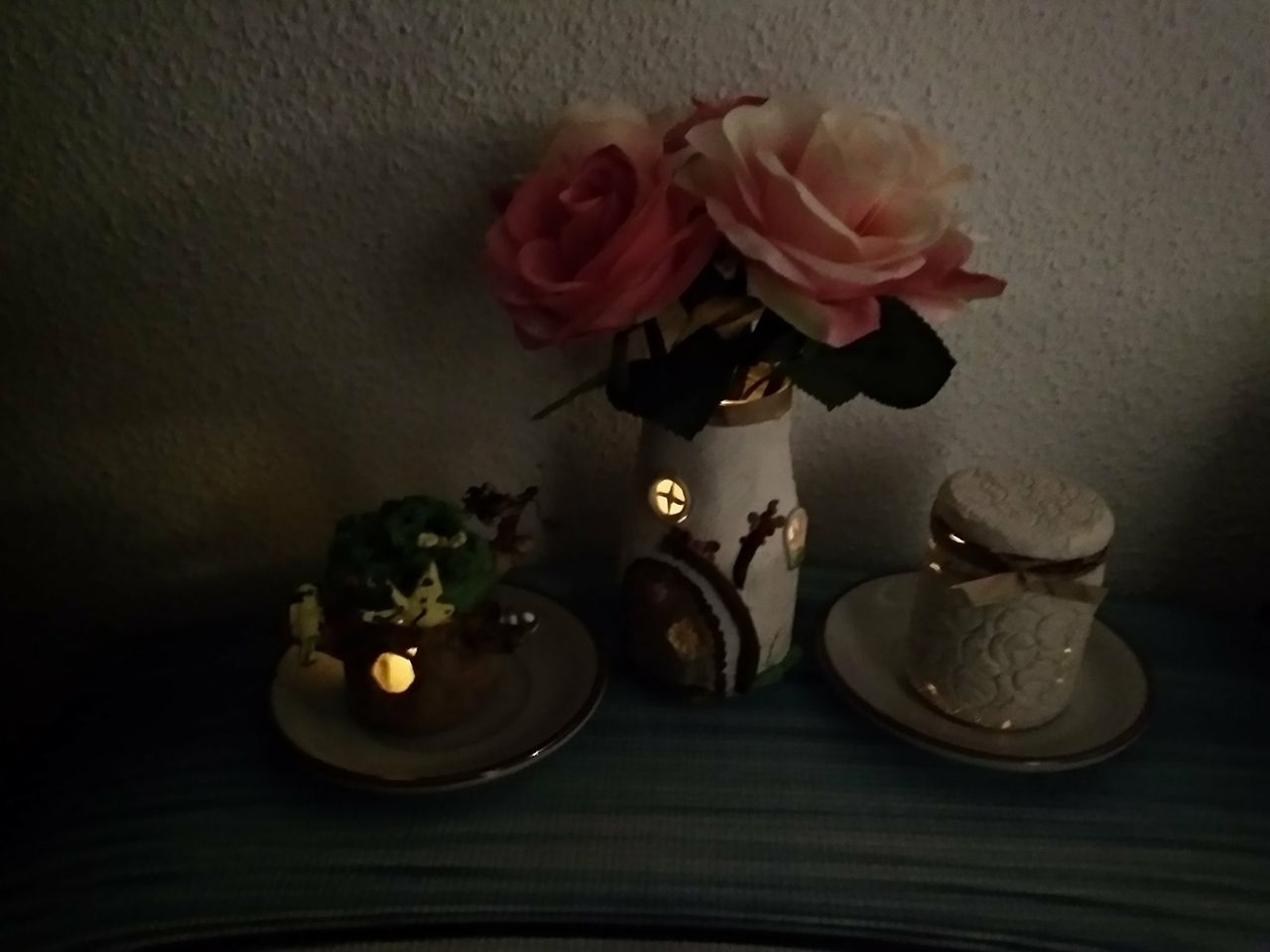 Así es como se ven de noche con una pequeña luz led dentro del frasco.