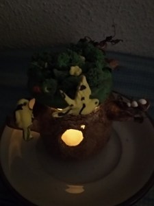 Este lo hizo mi hijo Mikel: un árbol con nidos de pajaritos, usó un molde de silicona para hacer los pajaritos.