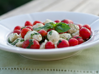 1 bolsa de espinacas1 bote de queso Cottage3 ajos puerroSal, pimienta negra, albahaca, cebollino y orégano y un chorro de aceite de oliva, a gusto. Rehogar los ajos puerros en el aceite. Añadir las espinacas y dejar bajar del volumen en baja temperatura. Salpimentar y adicionar las hiervas a gusto. Ensalada de tomate cherry con mozzarella fresca