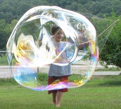 Recetas para Burbujas Gigantes: 12 tazas de agua 1 taza de detergente 1 taza de maizena 2 cucharadas de polvo Royal Mezclar todos los ingredientes, no hacer burbujas, y dejar reposar por una hora antes de utilizar. Foto; Pinterest