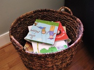 Tener un cesto con libros apropiados para la edad de tu hijo, o tus hijos para que pueda elegir. Foto: Pinterest