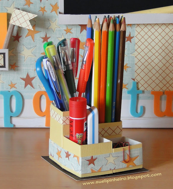 Con los sobrantes de papel hice un porta lápiz a juego, utilizando una caja de Nespresso recortada en diferentes alturas.