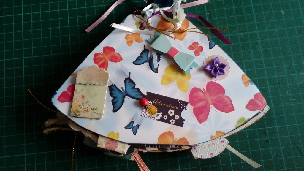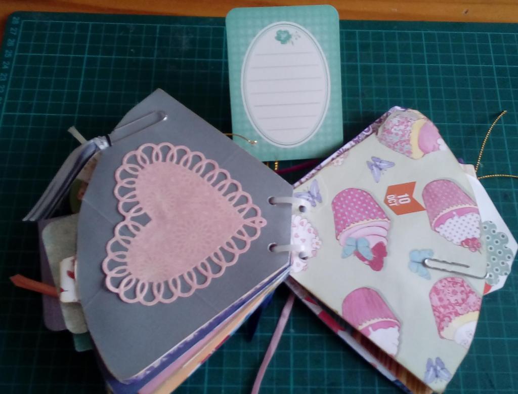 blocs de papeles que venden en las tiendas TEDI («Design Pad / 32 sheets / 14,8 x 21 cms). De este modo, se desperdicia menos papel y el trozo que queda puede usarse como tag o tarjetón interior.