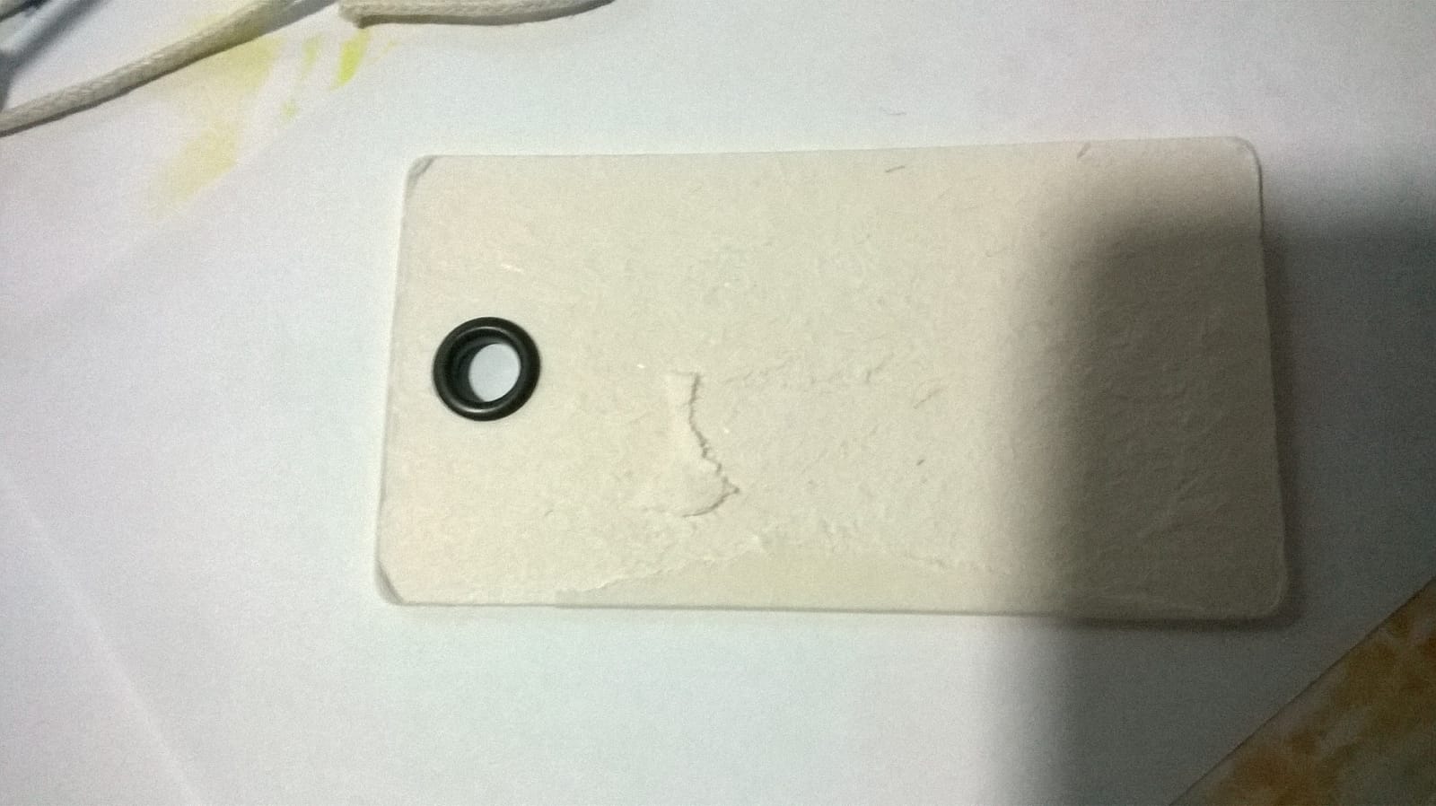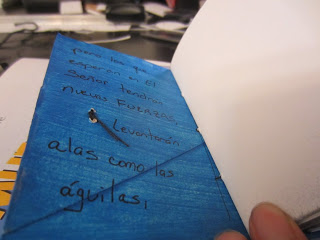 En el cartón de atrás terminé el mensaje y también hice un agujero para atar el cordón.