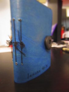 A la portada se le añade un botón. Yo decidí coserlo pero también se puede pegar. En la parte de atrás de la portada escribí un mensaje especial a mi amigo.