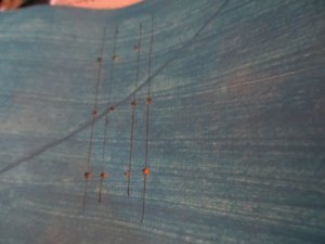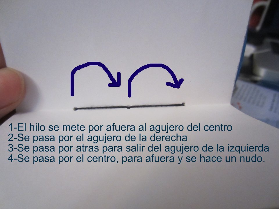 En esta foto estaba terminando el ultimo librito. Se puede ver cómo van quedando los nudos por afuera, en el centro.
