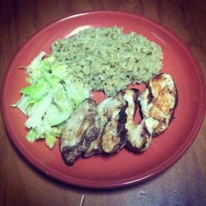 1 cucharada de aceite de coco2 dientes de ajos machacados1 lata de leche de coco1 lata (la misma del leche de coco) de caldo de pollo 1 lata (la misma del leche de coco) de arroz integral. 1 cucharita de curry (o al gusto) Freír el ajo en el aceite. Adicionar la leche y el caldo. Cuando empiece a hervir, adicionar el arroz y bajar el calor. Ajustar la sal y adicionar el curry.Como el arroz integral tarda más en hervir he adicionado un poco de agua al final hasta que se hizo «al dente». He servido con pechuga de pollo «masala» que compré ya condimentada, y una ensalada verde. ¡Les ha encantando!