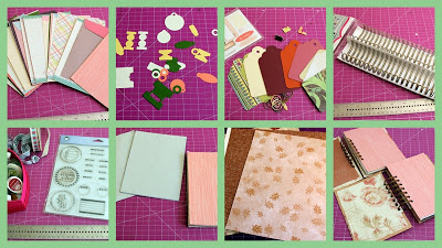 1. Colección de papeles. Yo las he hecho 15×10 cms. He elegido la misma gama de colores, algunos con estampas, otros lisos, otros para journaling. 2. Una colección de tags para páginas.3. Tags grandes para añadir espacio para retratar toda la información4. Un método de encuadernación (Bind it All, Encuadernación Japonesa, etc)5. sellos, cintas a gusto con temas de viaje.6. 2 tapas de cartón reciclado. Yo añadí 1,5 cm en la lateral vertical para adicionar un boli.7. papel de estampa fino para facilitar en la hora de forrar las tapas, tipo encuadernación.