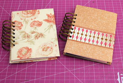 Aquí muestro algunas de las páginas de las libretas ya hechas. Traté de hacerlo variado y con muchas posibilidades para añadir información, journaling y fotos. He optado por poner algunos sobres también. He añadido una cinta para el bolígrafo.