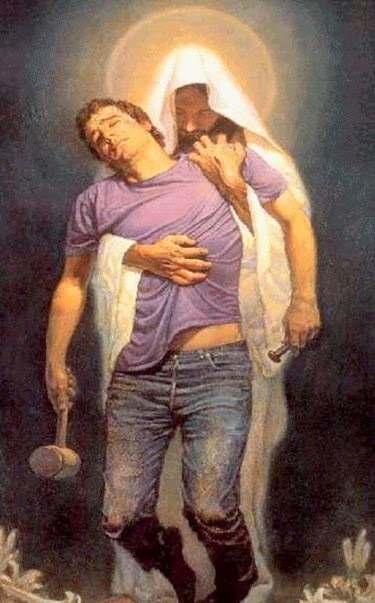 Imaginaos que tu has matado a alguien, tu camisa está llena de sangre y mereces la cárcel. Viene tu hermano mayor, te quita la camisa sucia de sangre, te da la suya que está limpia. Cuando llega la policía, ¿ a quien llevará? Al hermano mayor que se ha hecho culpable en tu lugar. Fue lo que hizo Jesús por nosotros.
