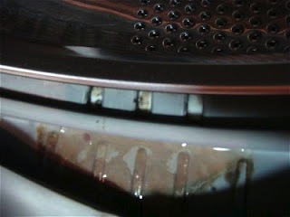Esto suele pasar con las lavadoras de carga frontal, la fuerza centrifuga no es tan eficaz como en las lavadoras de eje horizontal, por eso hay una posibilidad de que no toda el agua se drena de la máquina y se acumula en la goma.Busqué en internet y encontré este site que tiene muy buenos consejos. ECOCAREN Incluso las fotos son suyas.Entre los varios consejos, me gustó este: Una vez al mes, añadir una taza de vinagre blanco destilado y una taza de bicarbonato de sodio directamente en el tambor, y otra ½ taza de vinagre y ½ taza de bicarbonato en el dispensador de jabón y dejar proceder el lavado con agua caliente.Si el estado de tu lavadora está muy malo, puede que sea necesario utilizar cloro en lugar de vinagre y bicarbonato de sodio. Solo no olvidarse ejecutar algunos ciclos vacíos para limpiar del cloro y no estropear tu ropa cuando vayas a lavarla.Aprendí también a utilizar menos amaciantes o suavizantes, pueden hacer daños a la salud y a algunas ropas en especial. Ya compré una botella de vinagre y la dejo junto al amaciante. Ahora uso mitad de amaciante y mitad de vinagre.¡Ahora sí! Está limpia mi maquina!