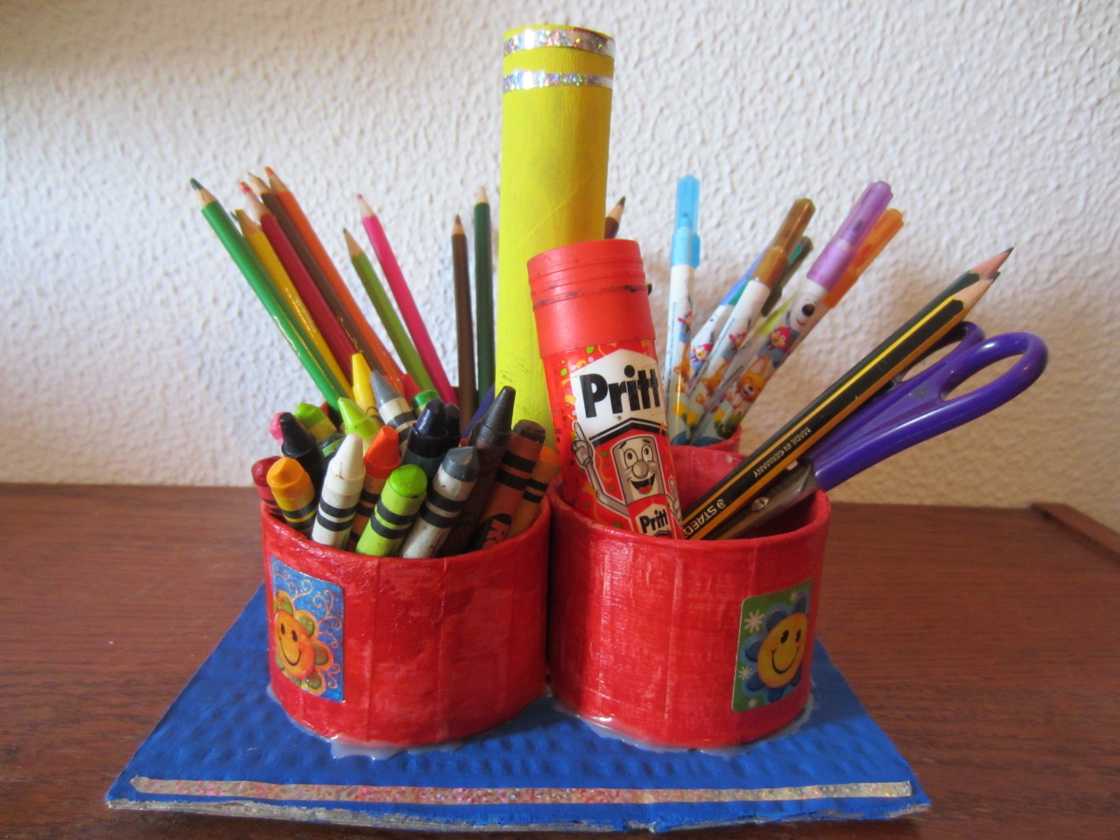 - Cesto artístico: Prepara un cesto artístico para el niño. No necesitas comprar nada nuevo, incluso puedes usar los materiales del curso escolar, pero al estar en una cajita tan organizada, les gustará utilizarla.