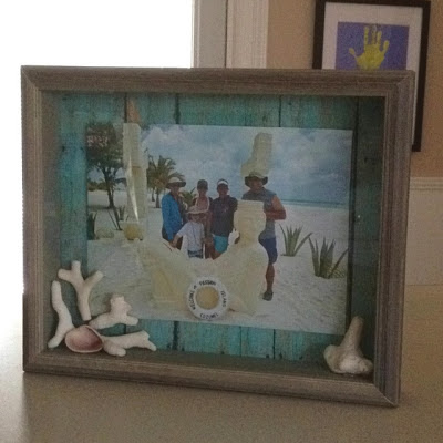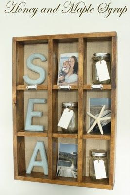 En este pequeño objeto de madera se puede adornar con fotos, arena en un jarro, y todo que represente vuestras vacaciones.