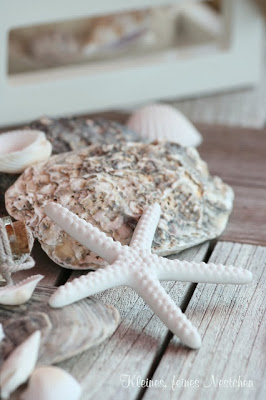 Me encanta este «shadow box» con la colección de piedras, conchas, etc.