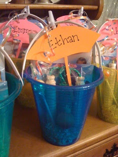 Para los regalitos para el niño se ha utilizado un cubo para la playa. Muy creativo.