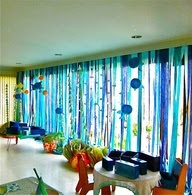 Me gusta el efecto cortina con tiras de papel y globos, un detalle que puede cambiar por completo una fiesta.