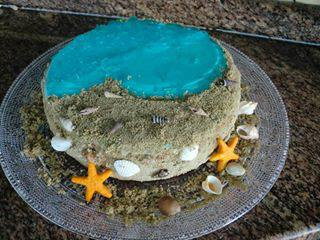 Ahora, me gustaria compatir la tarta y la receta para hacer el efecto arena y agua.